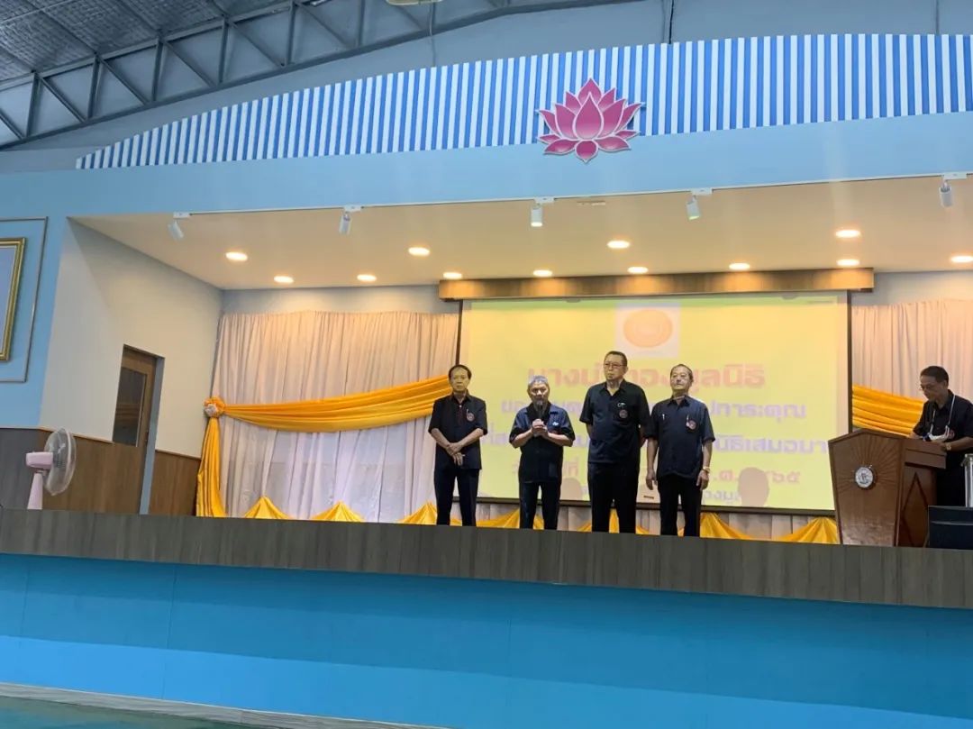 泰国格乐大学与挽武通学校是友好合作院校,双方于2022年8月签署了友好合作协议,在挽武通学校共同建立了挽武通慈祥基金会与格乐大学中文研发合作基地。泰国格乐大学中国国际语言文化学院顾问、创新研究院院长刘丽芳副教授、中国国际语言文化学院院长罗勇博士、院长助理吴有进博士、汉语国际教育专业文爱萍老师、范亮老师一同出席。