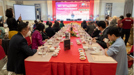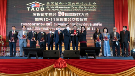 2022年12月24日,泰国留学中国大学校友总会成立20周年暨第十、第十一届理事会交接仪式在泰国中华总商会光华堂举行。中国驻泰国大使馆大使韩志强、泰中友好协会会长功 • 塔帕朗西、泰国中华总商会主席林楚钦、潮州会馆主席徐惠深、泰国华文教师公会主席/留中总会永远名誉主席罗宗正、泰国留学中国大学校友总会历届主席以及留中总会友好单位、理事、会员等三百多人出席。