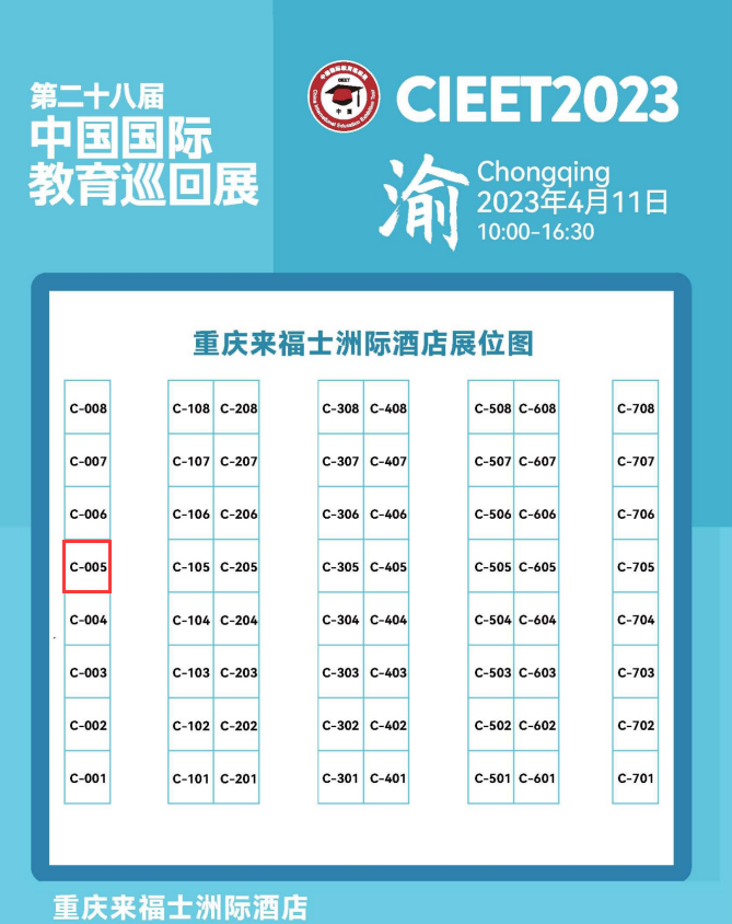 不远万里奔赴山海,开启春日留学梦想盛宴。第二十八届中国国际教育巡回展(CIEET)重庆站即将开幕,欢迎学子们报名参加,一同开启美好留学之旅。