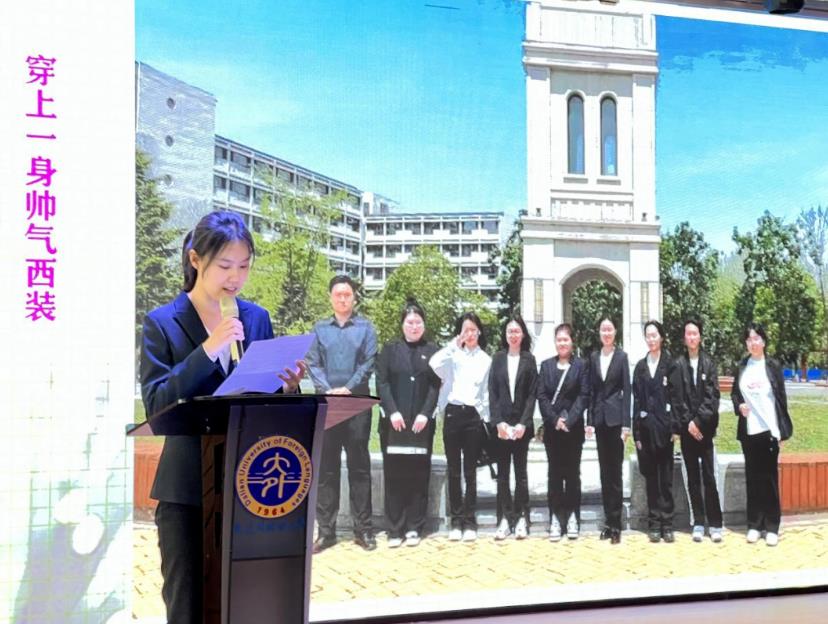 会议上,中泰班班导师樊倩老师用一张张照片与学生共同回忆在大外一年里的相识相知相伴;蒋桂萍主任宣布获奖名单,并希望同学们能够持续秉持着专注、自律的学习态度,锐意进取,奋勇争先,努力在求学路上创造出更加辉煌的成绩;赵峥为、鲁敬凇同学作为学生代表上台发言,感恩老师们的辛勤陪伴和无私奉献,并激励同学们珍惜青春,不负韶华;家长代表姜兴敏女士在会上也祝福同学们能够在异国他乡勇往直前,奔赴自己美好的锦绣前程;辅导员李佳茗老师希望同学们能始终以平和的心态、扎实的本领去应对各种“不确定性”,用梦想与拼搏拥抱属于自己的星辰大海;泰国格乐大学孟月杰老师、张宏宇老师为同学们详细介绍了出国前相关手续及国外生活注意事项,帮助同学们顺利过渡和融入当地的留学生活,也希望学生可以脚踏实地,扬帆远航;会议最后,陈鹏院长、翟云峰院长分别发表寄语,他们叮嘱同学们在海外留学期间要严格遵守外事纪律,做到忠于祖国,维护国家主权和民族尊严,知行合一。