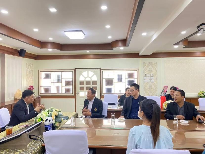当日下午,我校访问团一行来到素叻披他耶中学(Suratpittaya School),校长Piangkae Chitchui女士、副校长、中文组负责人Pitchwisak Kaewmanee先生、代表素叻披他耶中学与我校会谈,双方探讨了关于即将签署的合作交流备忘录细则,并且参观了该校基础教育委员会以及中文教学推广网络中心。