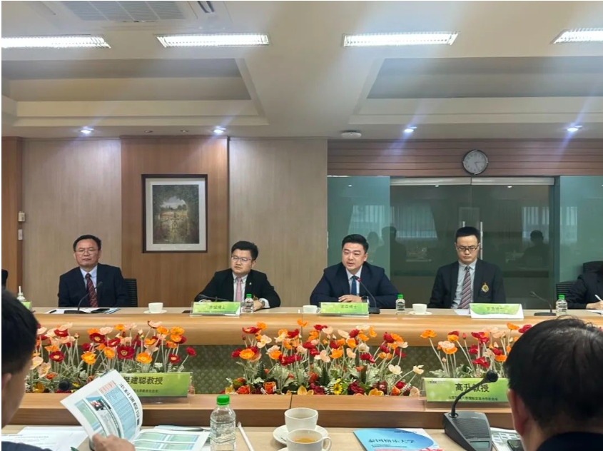教务处樊建聪处长首先表示感谢格乐大学对我们的邀请我们这次出发,这一次到泰国。也是唯一一个到访高校,表示两校合作的前景非常广泛。并对山东科技大学目前在校生情况做了简单介绍,两校无论通过什么形式,通过学历教育的形式还是非学历教育的形式,相互交流或者是寒暑期的短期项目形式多样,疫情放开以后,这种交流应该是越来越多,也包括老师之间的包括涉及到硕士过程的,这样肯定会涉及师资之间的交流沟通,可以形成一种资源共建共享的一个理念,加大这种交流的规模和力度来促进师生之间的一种双向交流,从而加大资源的一种共享力度。最后表示也诚挚的邀请格乐大学各位领导到山东科技大学校区指导工作。