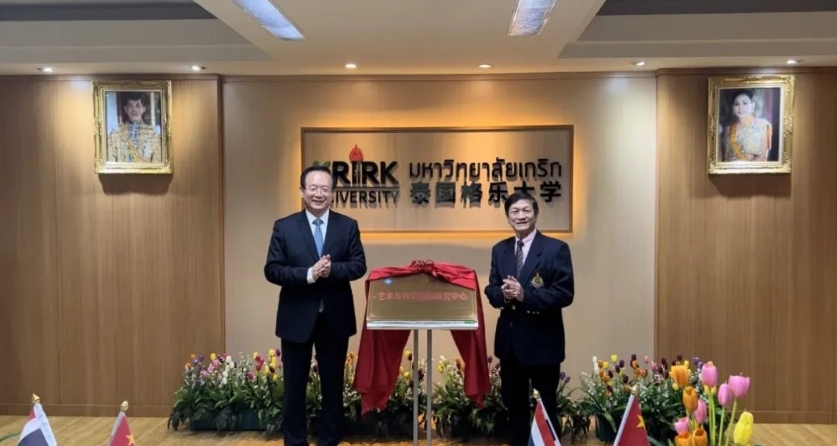 2023年10月21日,山东科技大学党委书记罗公利教授、研究生院韩作振院长、教务处樊建聪处长、国际处高升处长、国际处刘洁科长一行到访格乐大学,双方进行了合作交流会,签署了两校合作备忘录,成立“艺术与科学国际研究中心”,现场进行揭牌仪式,这标志着两校间教育合作和学术交流进一步深化,格乐大学素帕副校长、齐斌副校长、国际学院谢森院长、中国国际语言文化学院罗勇院长、教学副院长艺术系林毓芝博士、外事交流办李文甲副主任、国际学院院长助理宋小涵老师等相关部门负责人参加交流会。