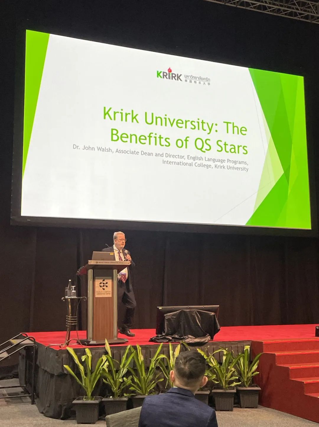 此次峰会,泰国格乐大学国际学院副院长约翰博士受邀作为亚洲名校代表发言,与大家分享了格乐大学科研与教学质量管控等方面的发展内容。